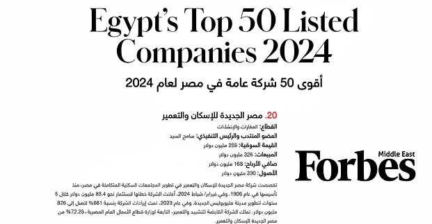 Misr Al Gadida was ranked among Forbes Middle East’s “Top 50 Most Powerful Companies in Egypt 2024.” This prestigious recognition underscores the company’s strong market presence, influence, and consistent profitability.